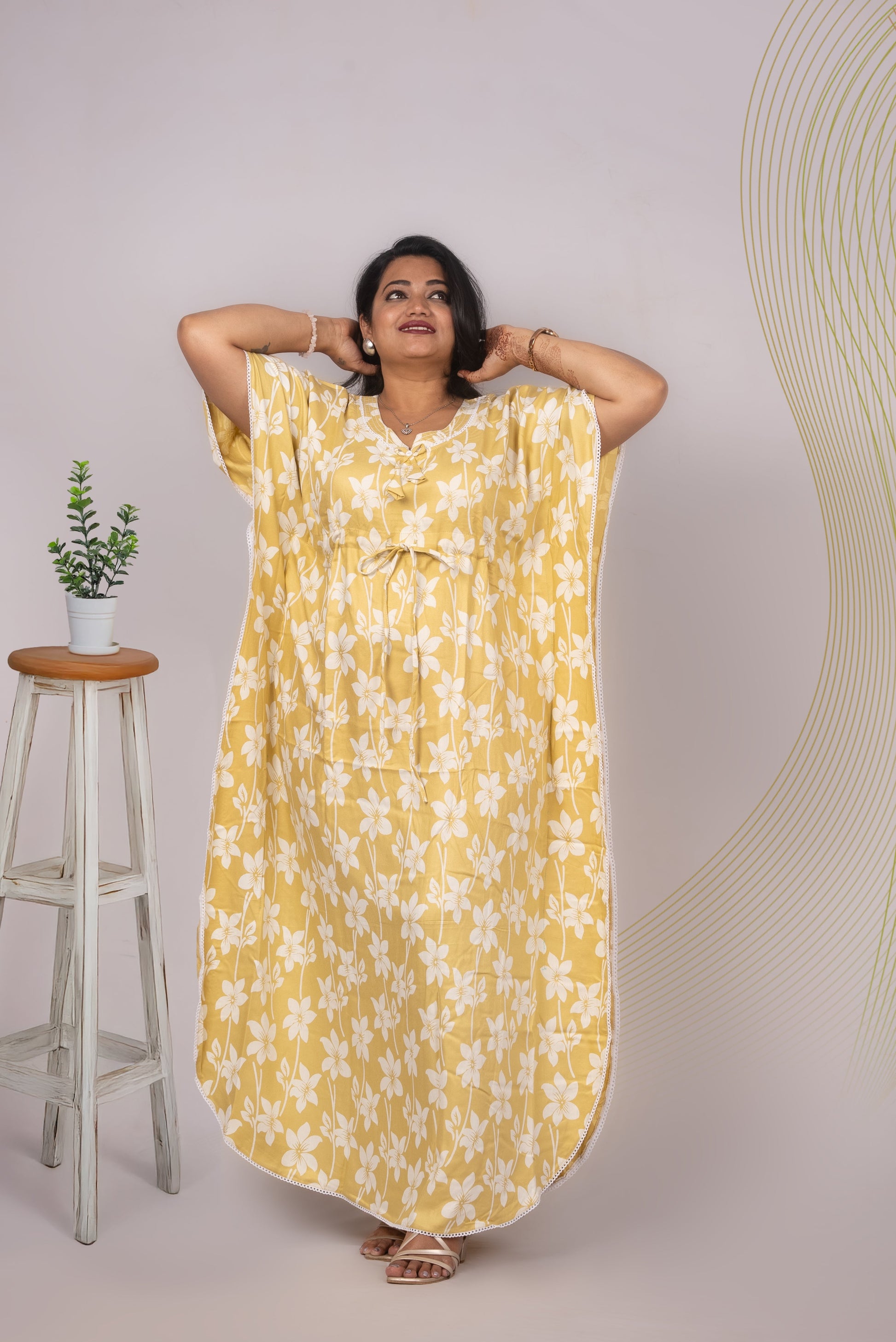 Yellow Twill Rayon Kaftan – Soft Elegance
